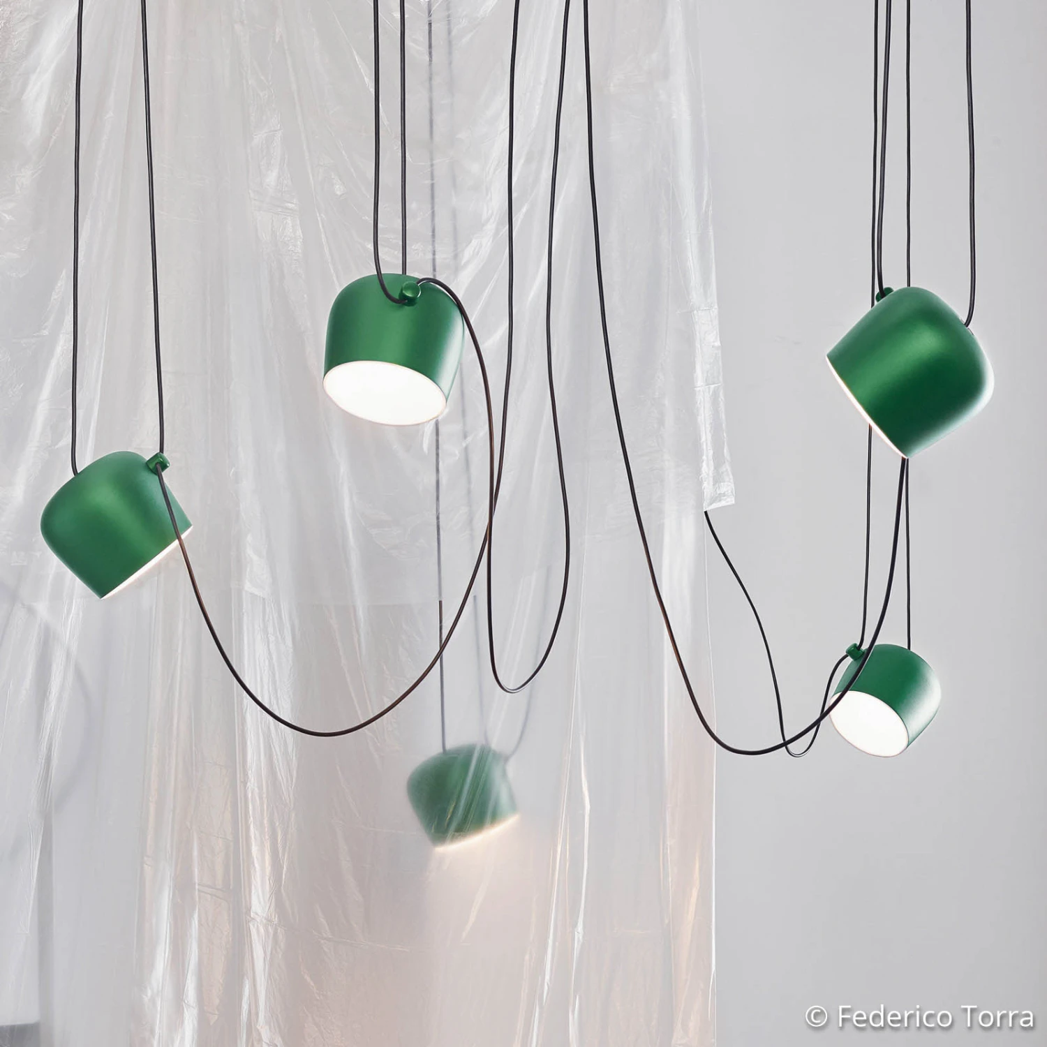 The hanging lamp Aim is a high-quality furnishing object of the Italian manufacturer FLOS. Whether placed in the center of the room or above a table – the designer Ronan