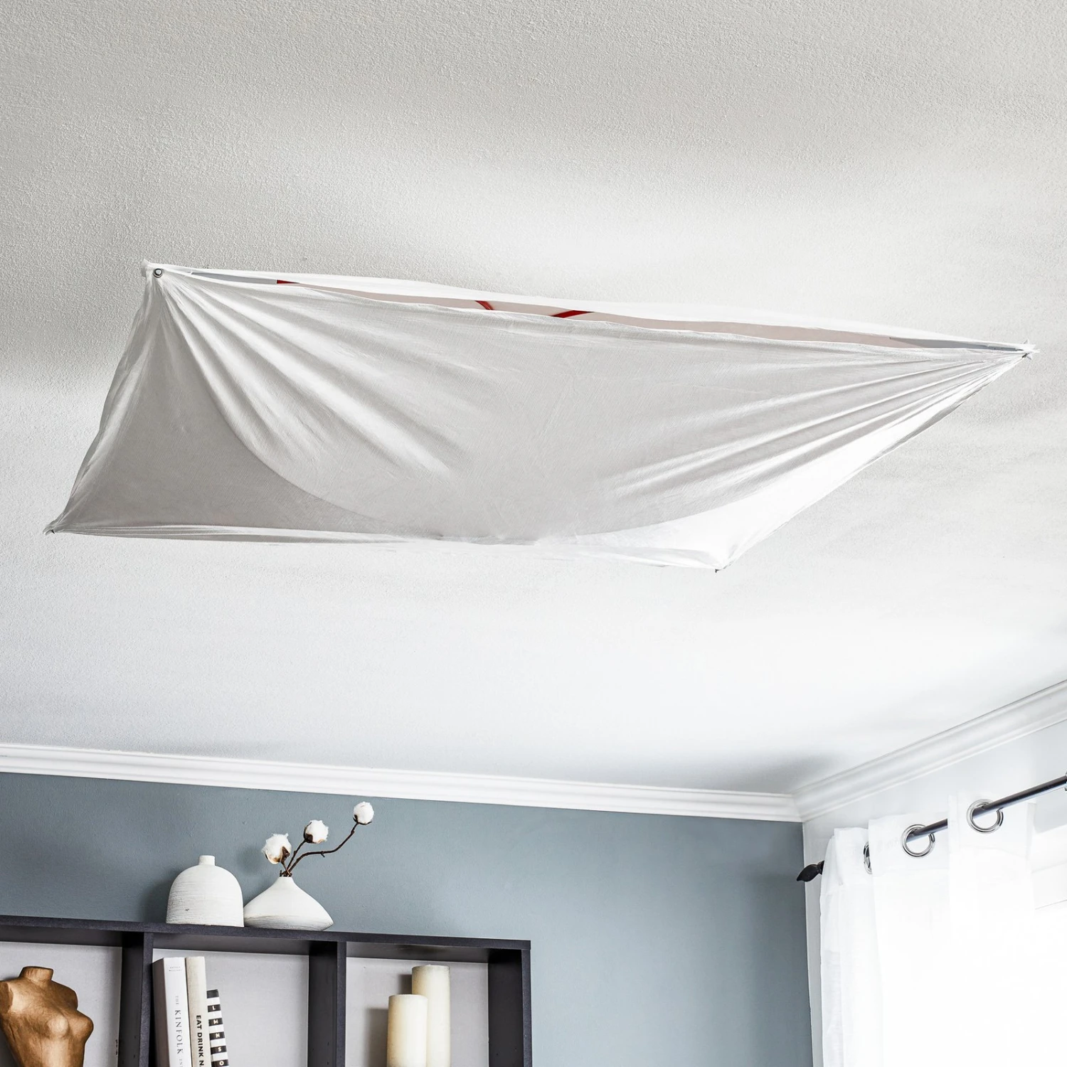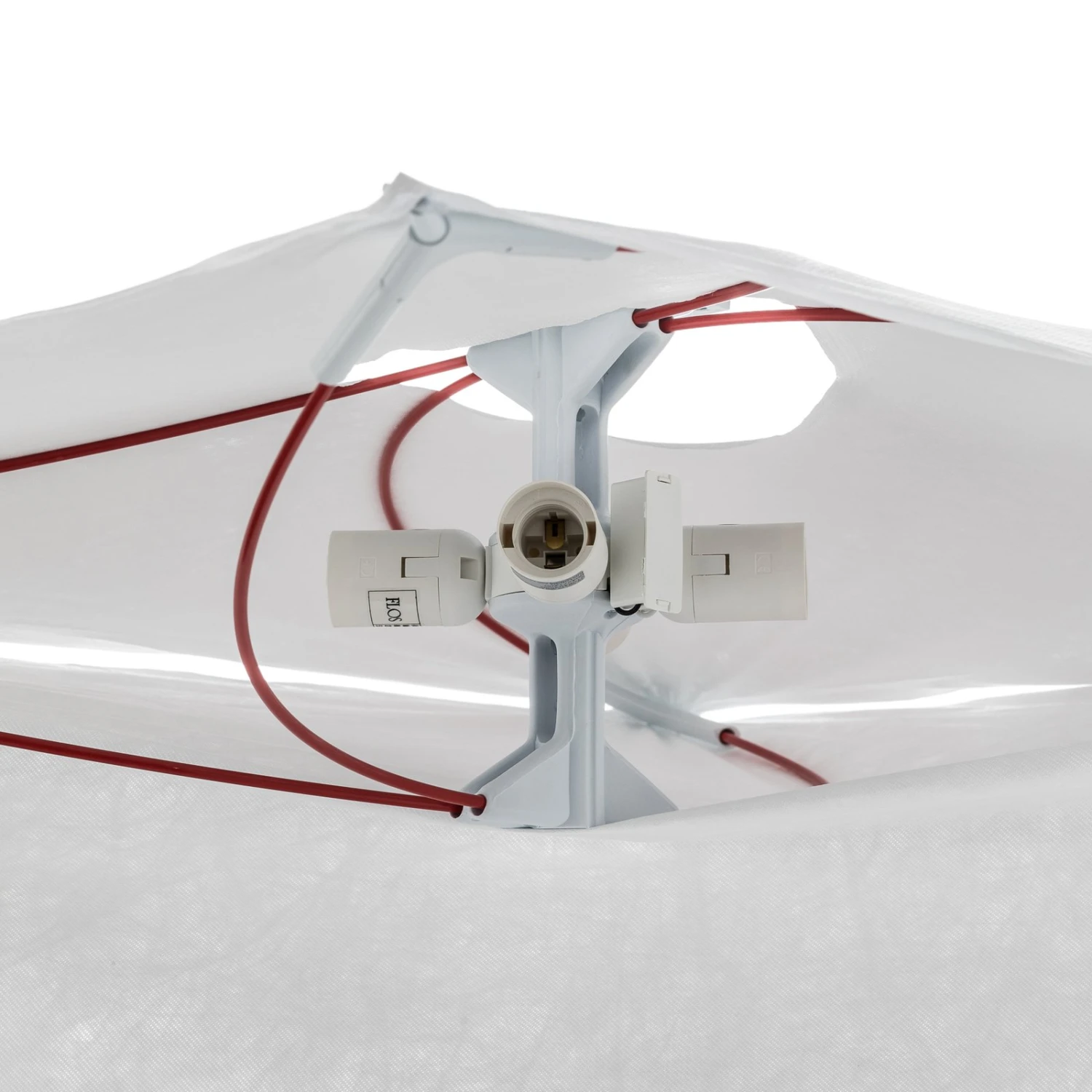 The ceiling lamp ARIETTE from FLOS is truly a classic, because it was designed by the designer Tobia Scarpa already in 1973, which speaks in particular for its timeless quality. Under the fabric shade with the structured fiber optics 4 bulbs are used and these provide a rather diffuse, almost cozy light, which comes in a very warm tone. Particularly ingenious and you can already see it through the fabric: Not about screws hold the entire construct – no, you feel rather reminded of days in nature felt particularly free, where you had to deal only with the bare necessities at all, because like the poles of a tent, the red fiberglass arches inside, which are covered with the white fabric.