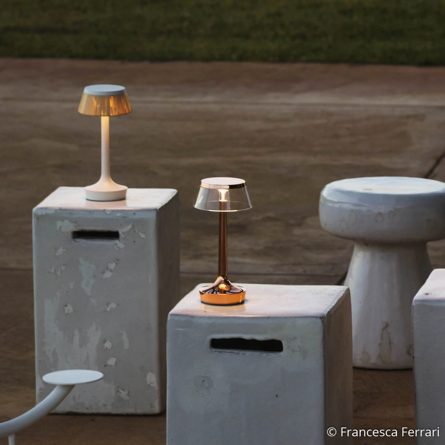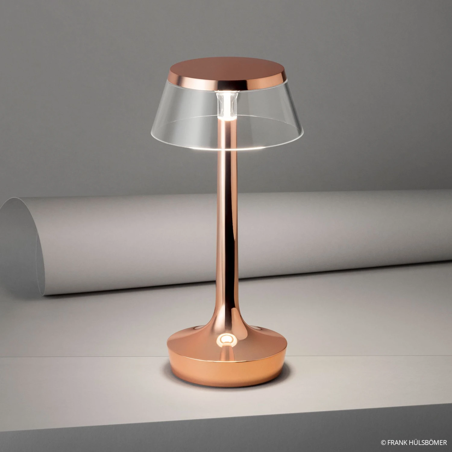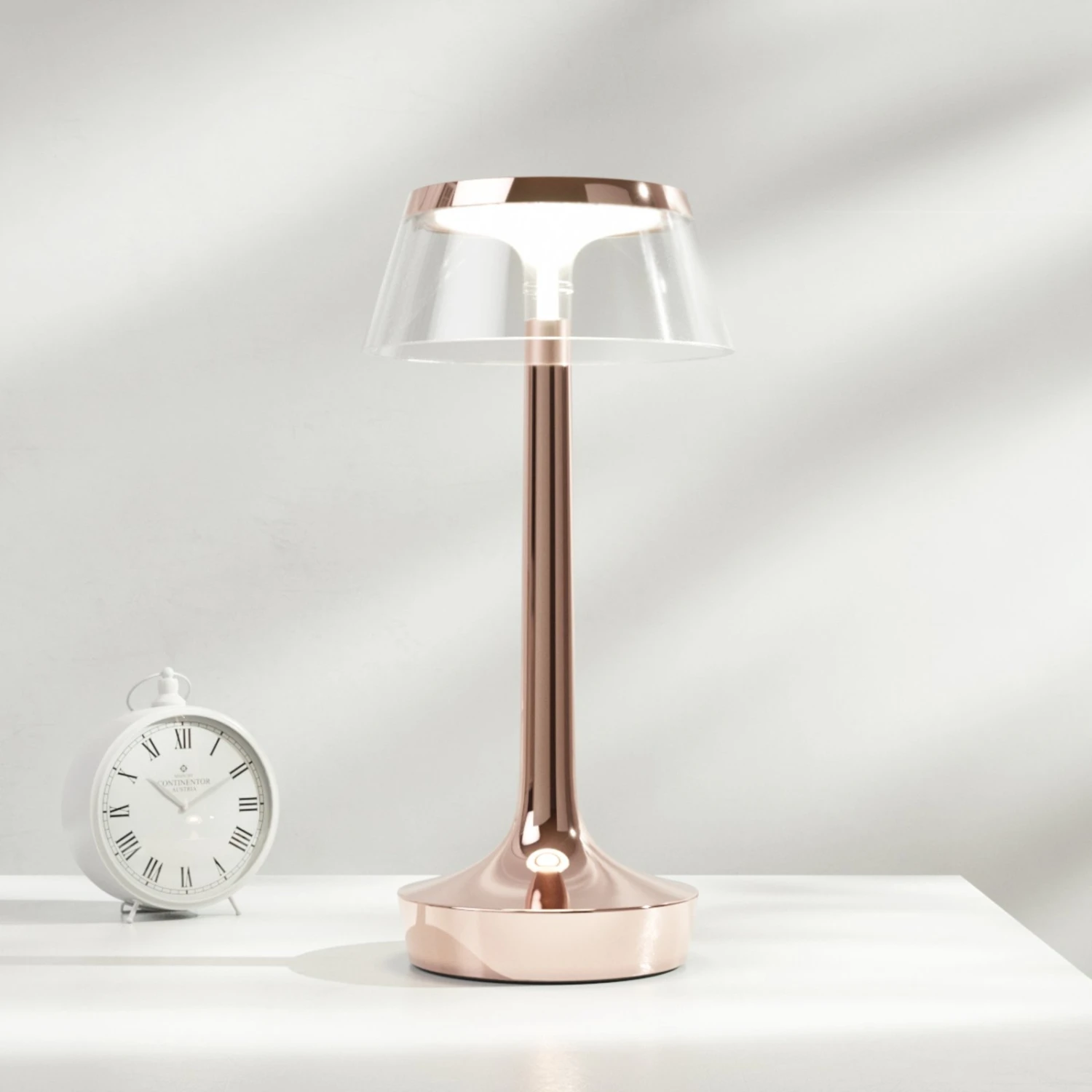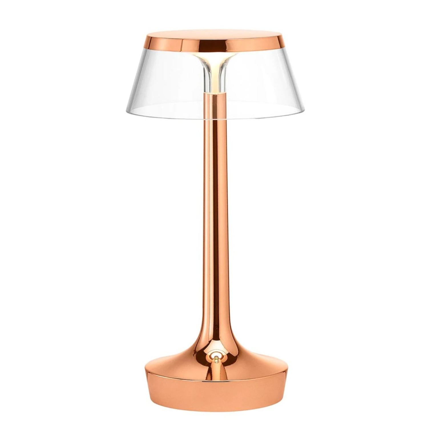 Copper-colored table lamp Bon Jour unplugged with integrated rechargeable battery for recharging