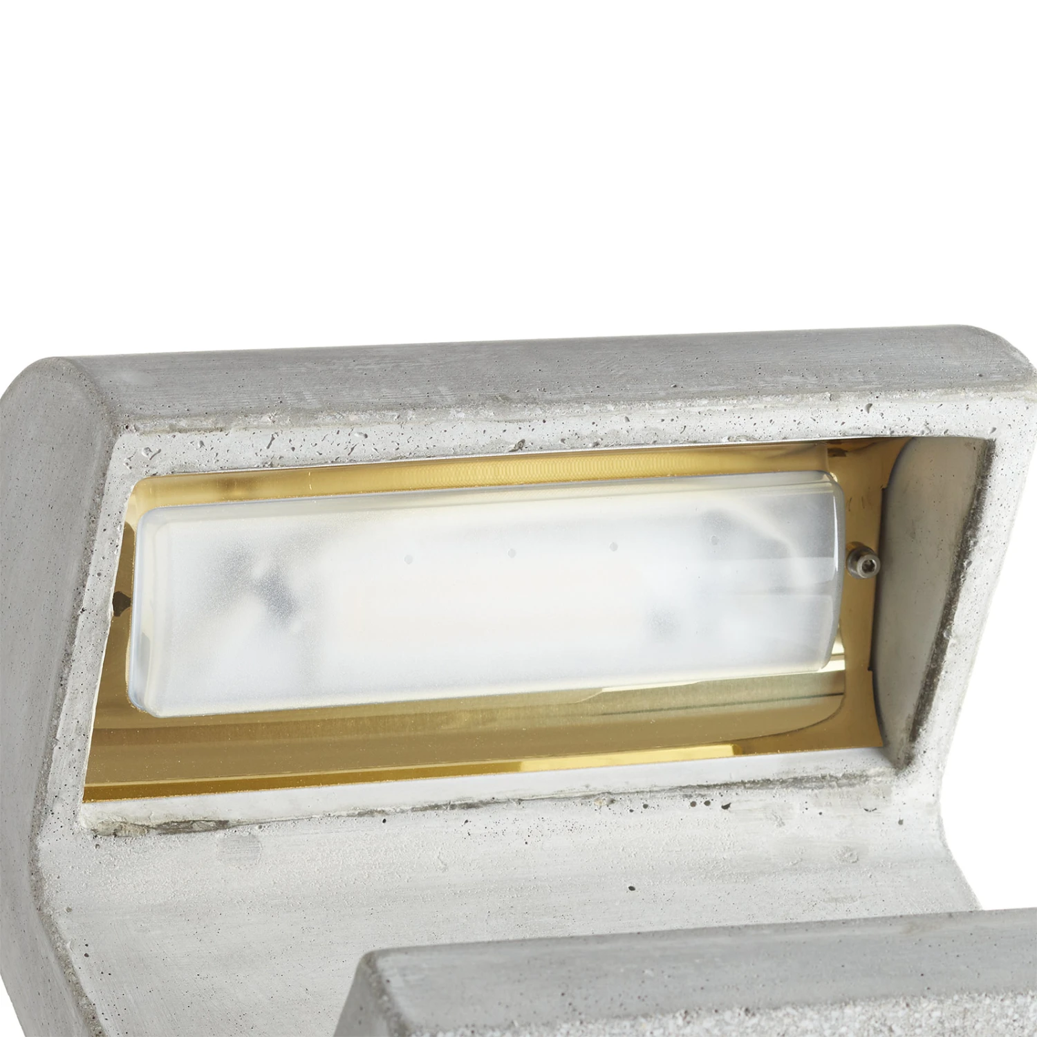 The unusually shaped body of this LED pedestal lamp Casting Concrete was handcrafted in Italy from concrete with incorporated reinforcing fibers, so that each luminaire is unique and small differences in color is proof of the uniqueness of each luminaire. The shape of the luminaire causes light radiation downwards and glare-free light in the immediate vicinity of the luminaire. A satin polycarbonate diffuser has been bonded to the heat sink to ensure water resistance. The luminaire is equipped with an output cable section made of neoprene, connection equipment for a multi-pole connection cable and mounting plugs, and is equipped with warm white LEDs. The LED control gear is integrated into the housing of the luminaire.