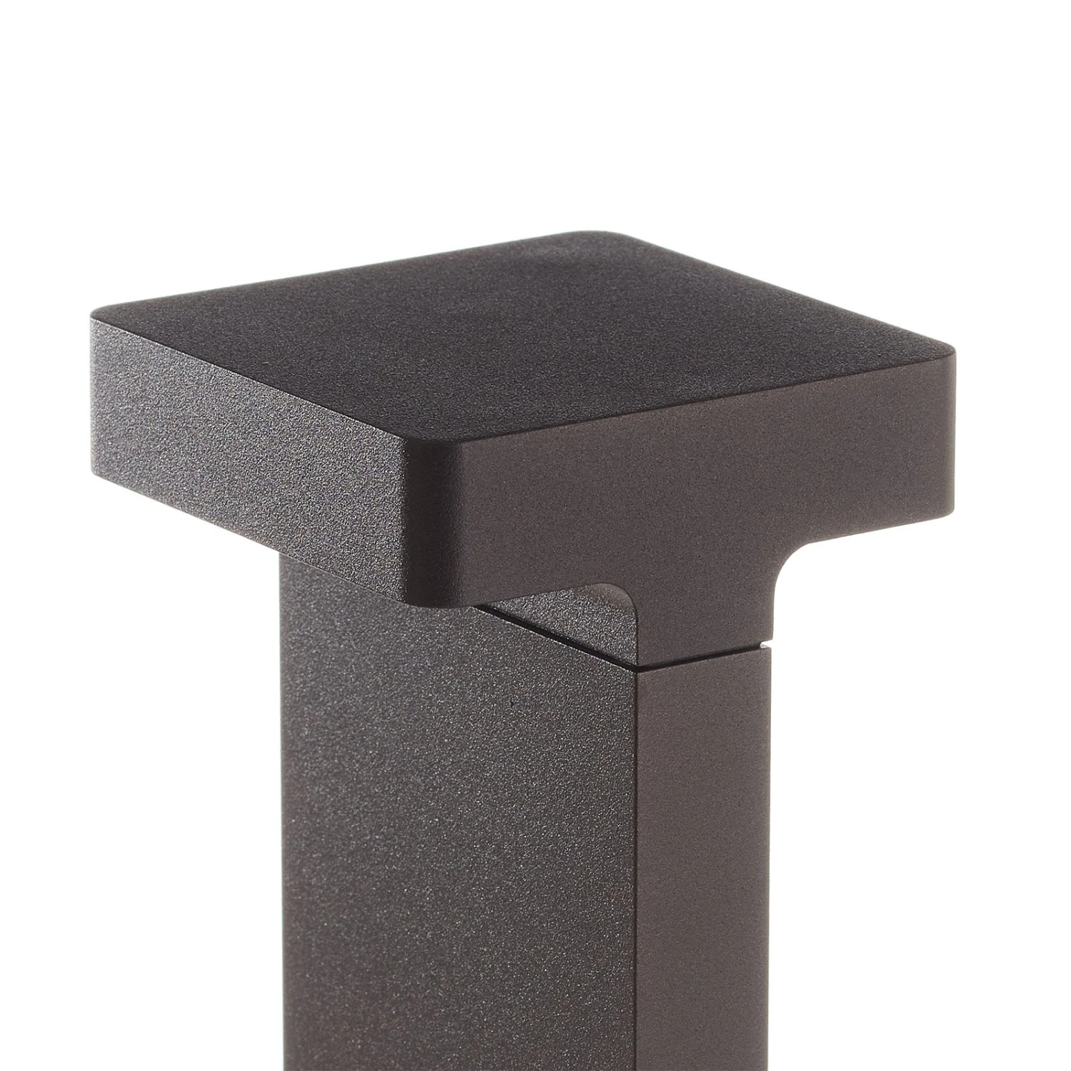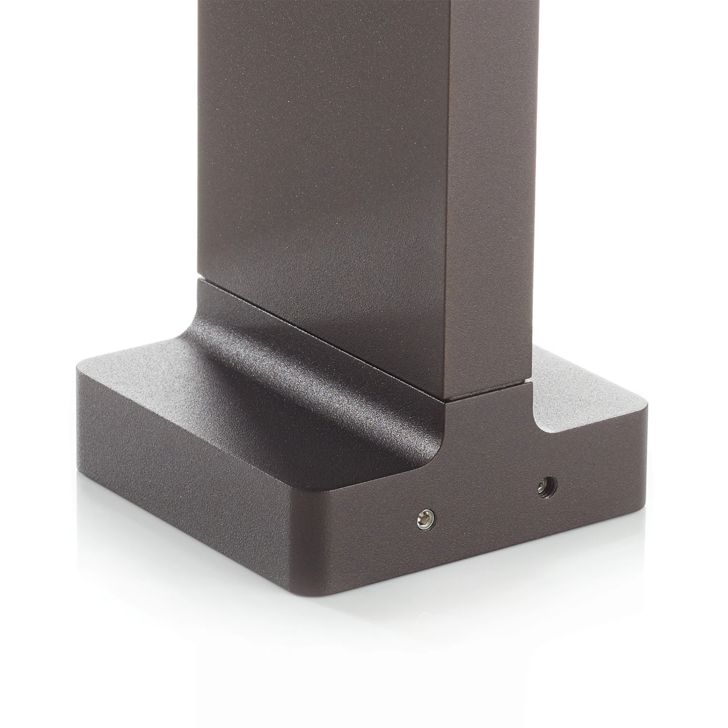 Due to a double powder coating of the surface, this dark brown LED base lamp Casting T 100 is particularly resistant to weathering. The angular luminaire, reminiscent of T-profiles, was made of extruded and die-cast aluminum, and the surface was first sandblasted to achieve better adhesion of the coating. The first epoxy powder coating provides resistance to mechanical and chemical influences, the second layer is made of polyester and protects the surface and thus the dark brown color from UV rays and from the effects of weather.