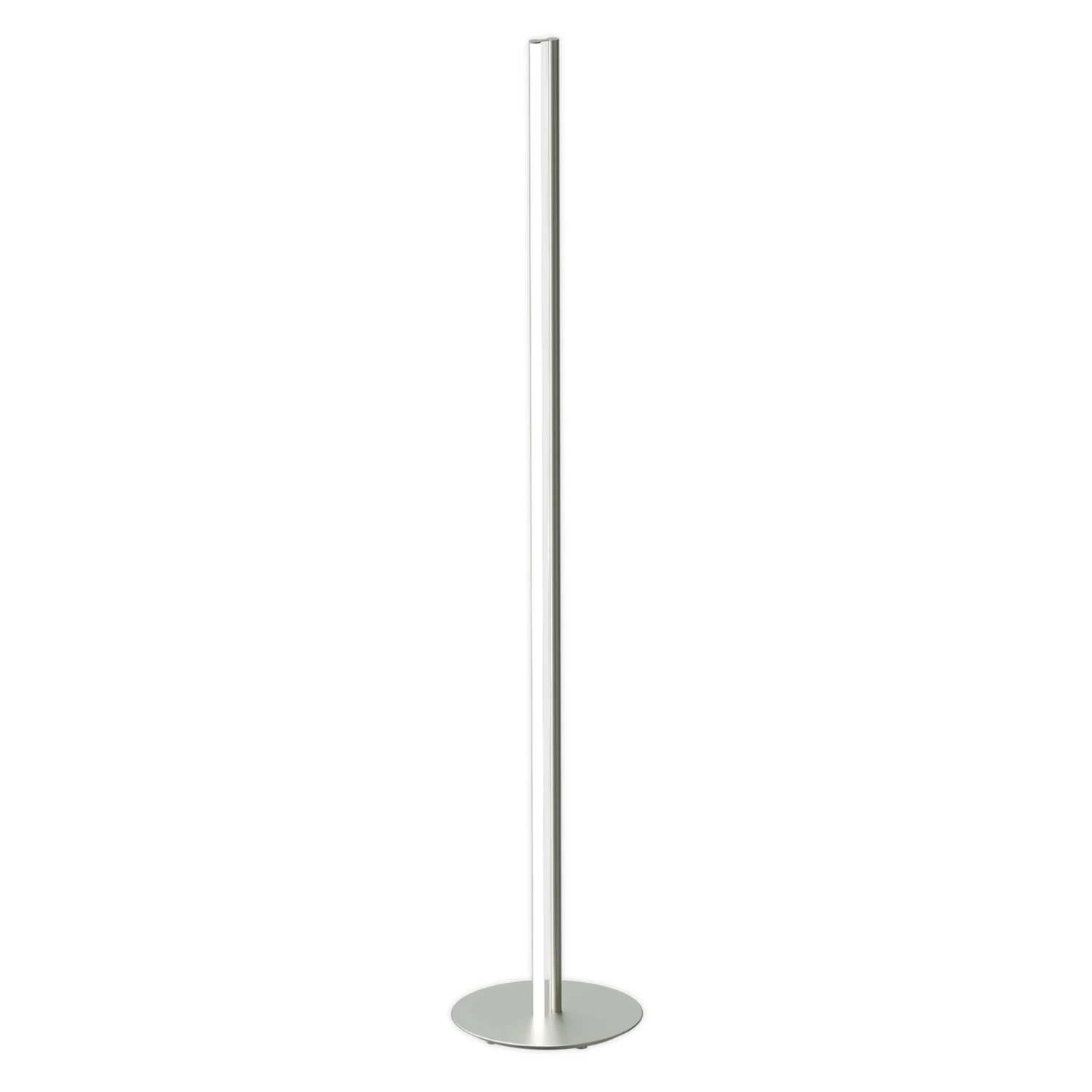 Simple and stylish presents the LED floor lamp Coordinates Floor, which was made of anodized aluminum and platinum silicone. The luminaire consists of vertical, narrow rods that can be individually aligned during installation and are attached to a round base. The two rods contain the LED light sources, which diffuse the warm light into the room and create a pleasant atmosphere. They also impress with high color rendering (CRI 95), which is particularly close to natural light. A switch is integrated on the supply cable, with which the luminaire can be switched on and off as well as dimmed (10-100%).