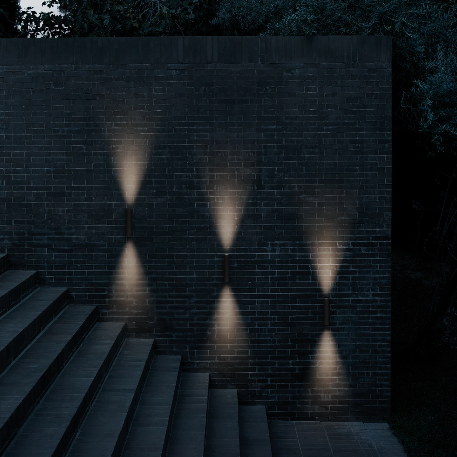 LED outdoor wall lamp Flauta Riga is open upwards and downwards, which allows the light to be emitted upwards and towards the ground. In addition, the luminaire is equipped with a practical reflector, which can be mounted either on the top or bottom by means of a magnet and safety screw. Once the light hits the deflector, it is reflected and provides a decorative effect. A driver has also been integrated into the wall lamp, which makes it possible to regulate the brightness using an external DALI dimmer. Thus, the lighting conditions can be optimally adjusted to personal preferences.