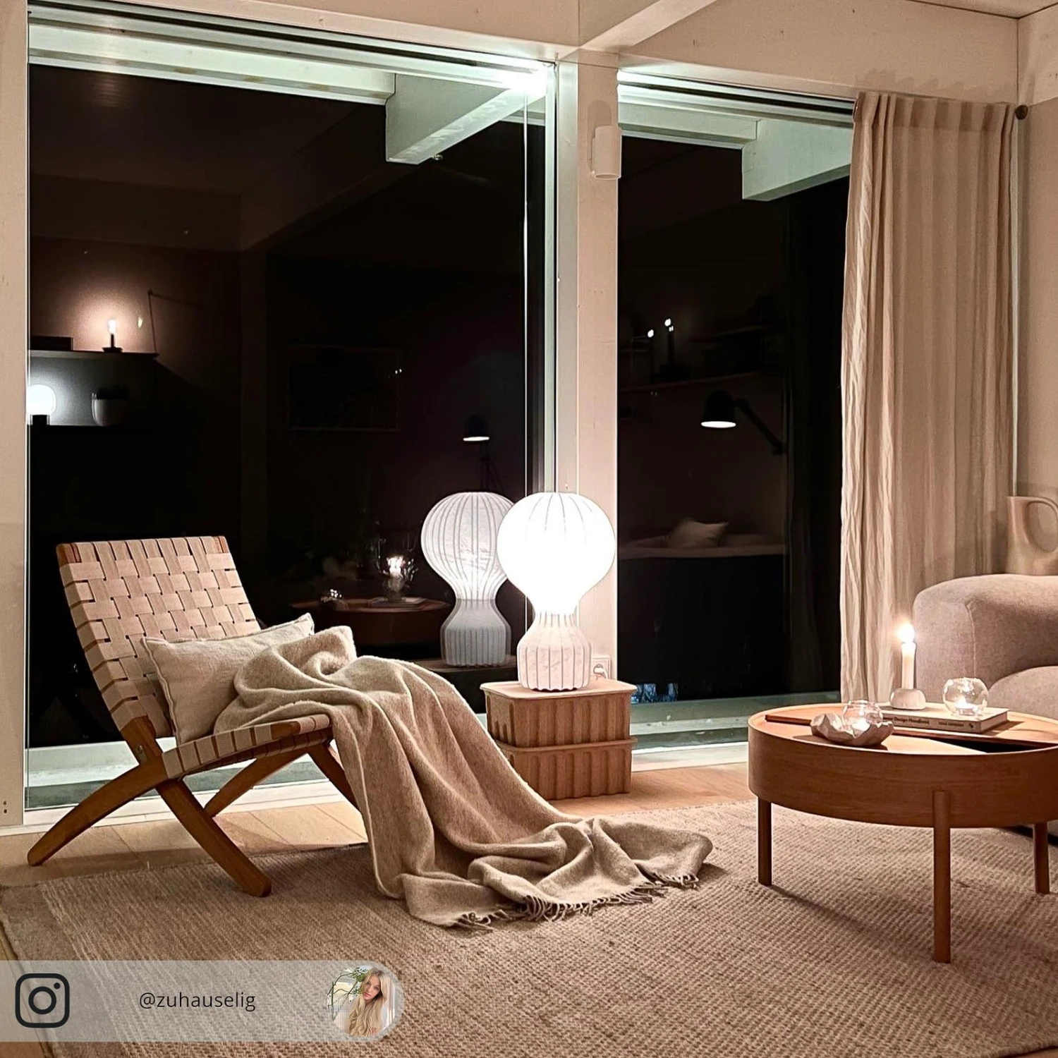 The material from which this designer table lamp has been made, is not called Cocoon without reason, because it already imitates the cocoon of a silkworm in the production. Thread after thread is wrapped around the steel frame until the result is precisely that cocoon, which presents itself to us here as a shade and is finally strengthened with a special spray so that the shape is stable and maintained. The bright material, which looks like fabric, is able to distribute the light glow wonderfully warm and even, which is why the atmosphere in the room in the glow of the table lamp Gatto so cozy. To make the lighting conditions even more adaptable to individual sensibilities, you can use the integrated dimmer, which is designed to regulate the brightness