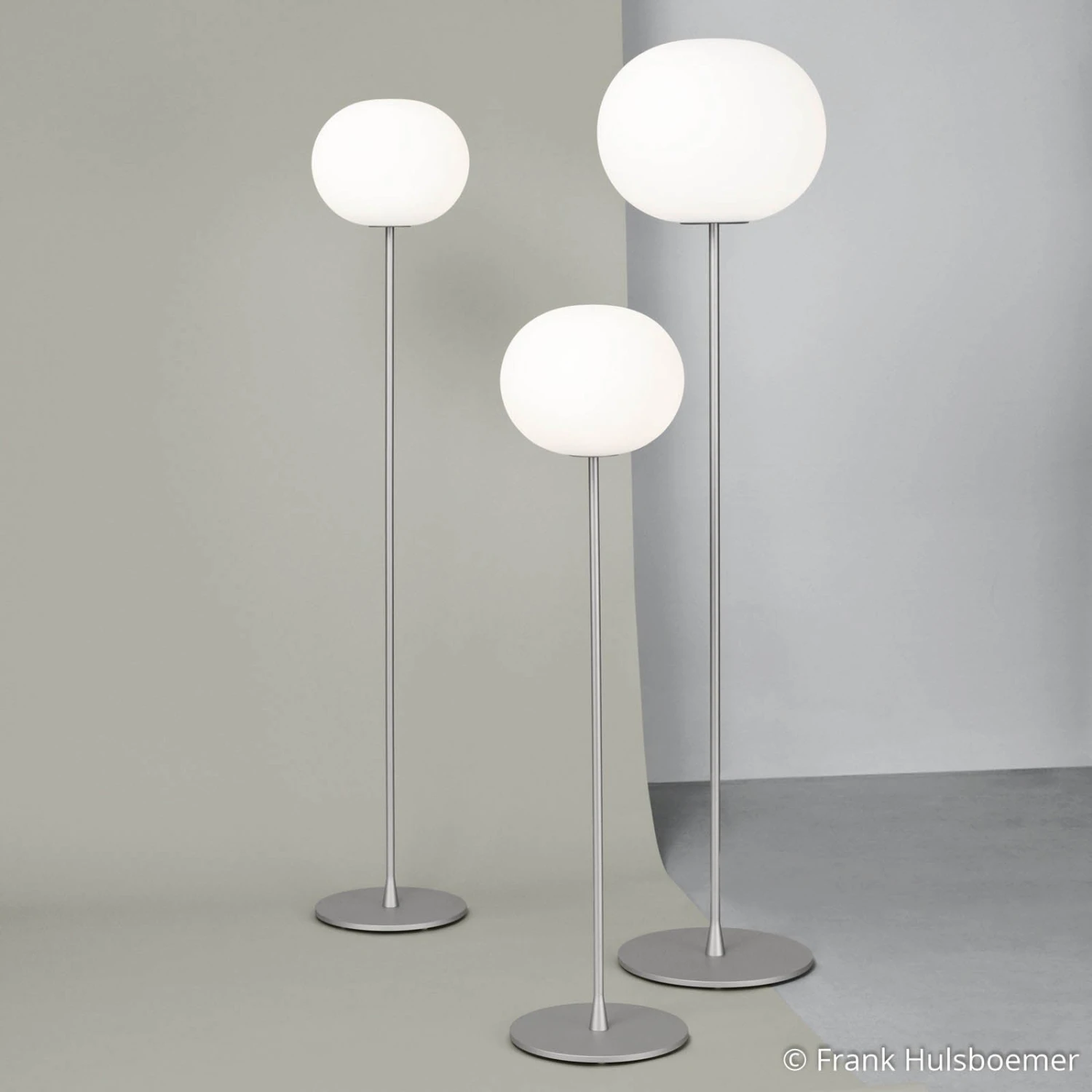 The English designer Jasper Morrison wanted to achieve a maximum of light distribution in the development of the lamp series Glo-Ball, for which a round glass body, as used in the floor lamp Glo-Ball F3, is ideally suited