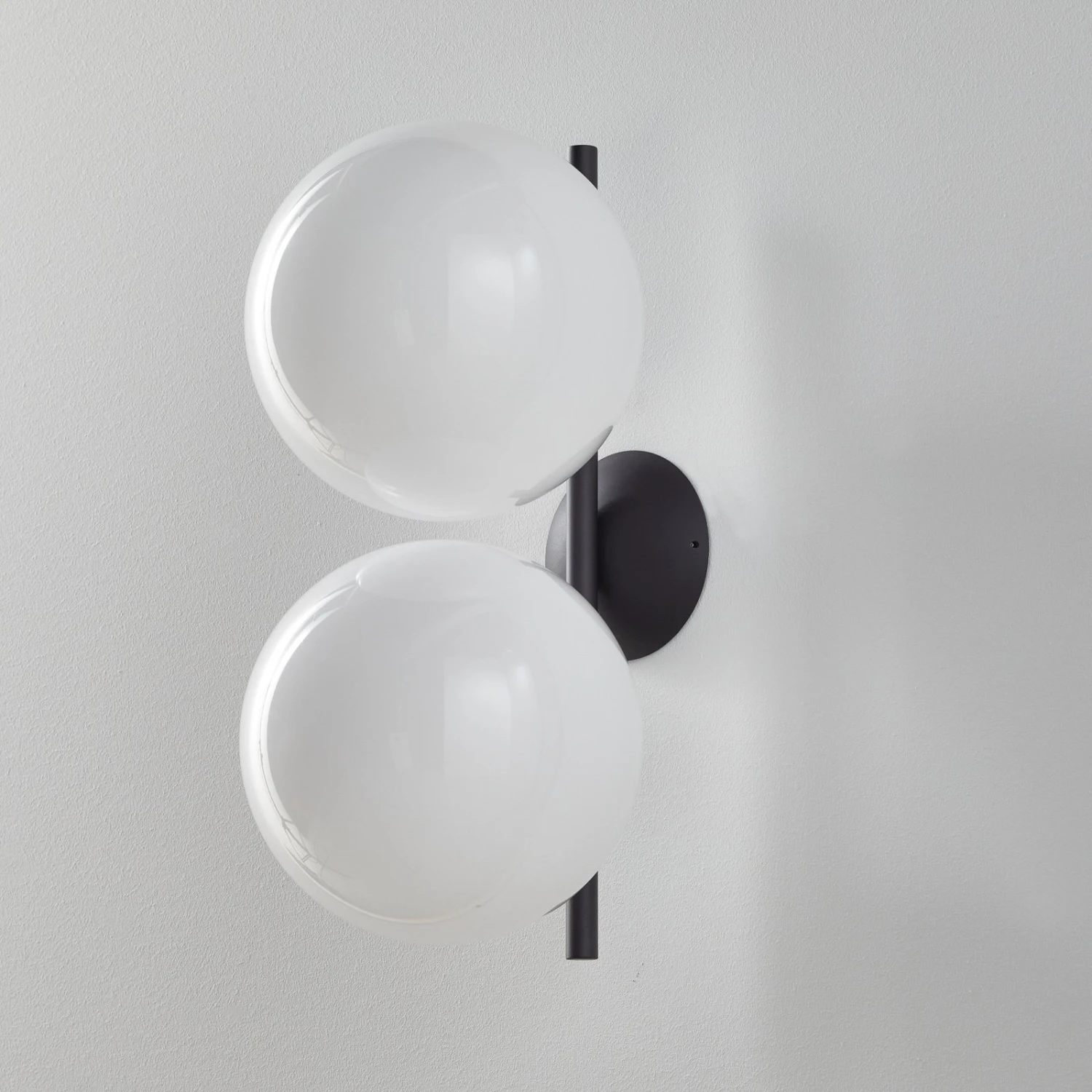 High-quality and timeless IC Lights Double shines as a balanced wall lamp with two opal-colored glass spheres. These provide not only glare-free lighting, but also uniform illumination of the space. Paired with the elegant metal IC Lights Double gives a distinguished color combination that fits many styles. IC Lights Double can also be used excellently as a ceiling light – for example, in narrower rooms such as hallways.