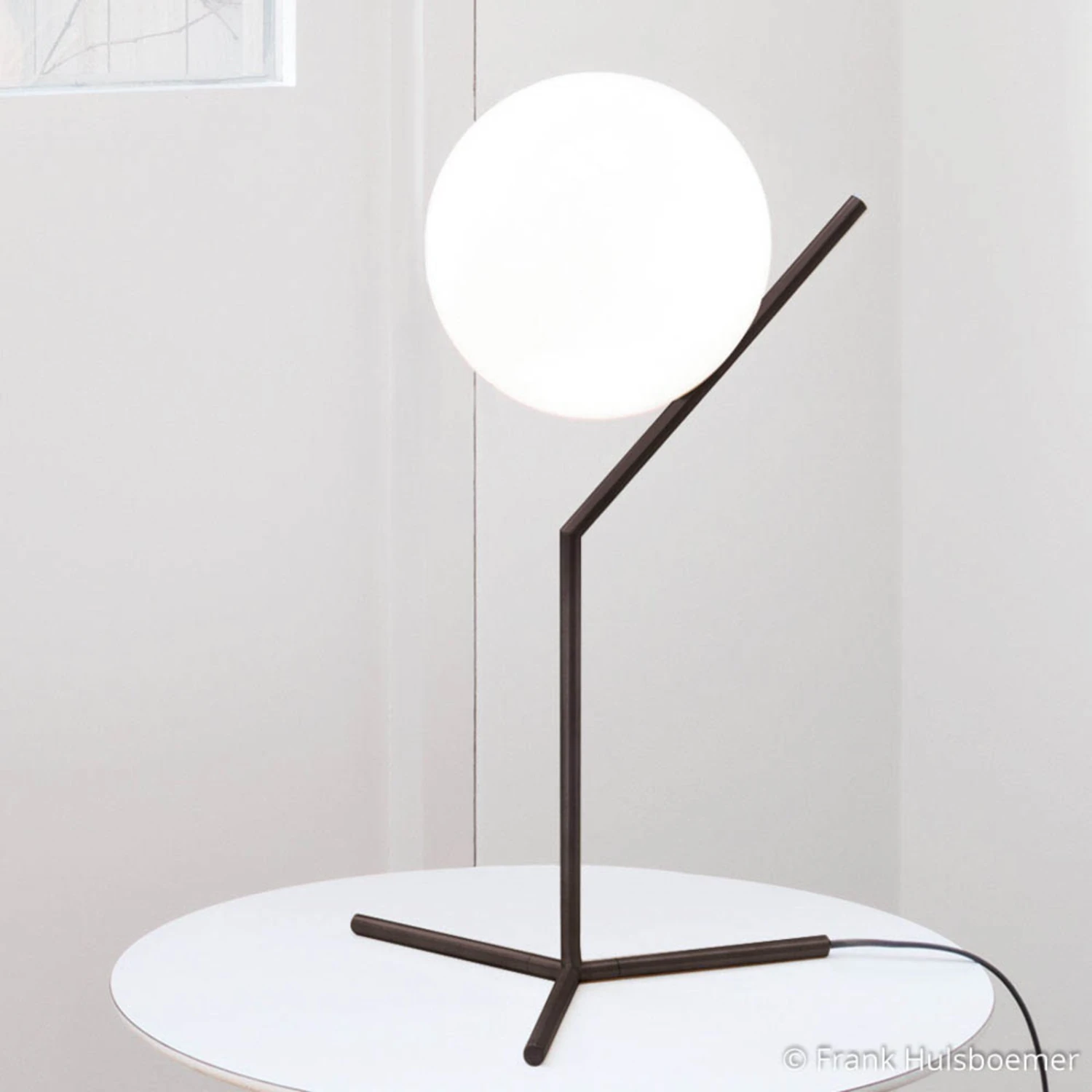 For the lamp series IC, the designer was inspired by the impressions during a juggling. This fascinated him so much that he wanted to create a lamp that reflects this perfectly shaped symmetry. Thus was born the table lamp IC with a glass sphere as a shade, which seems to float in complete balance on a rod.