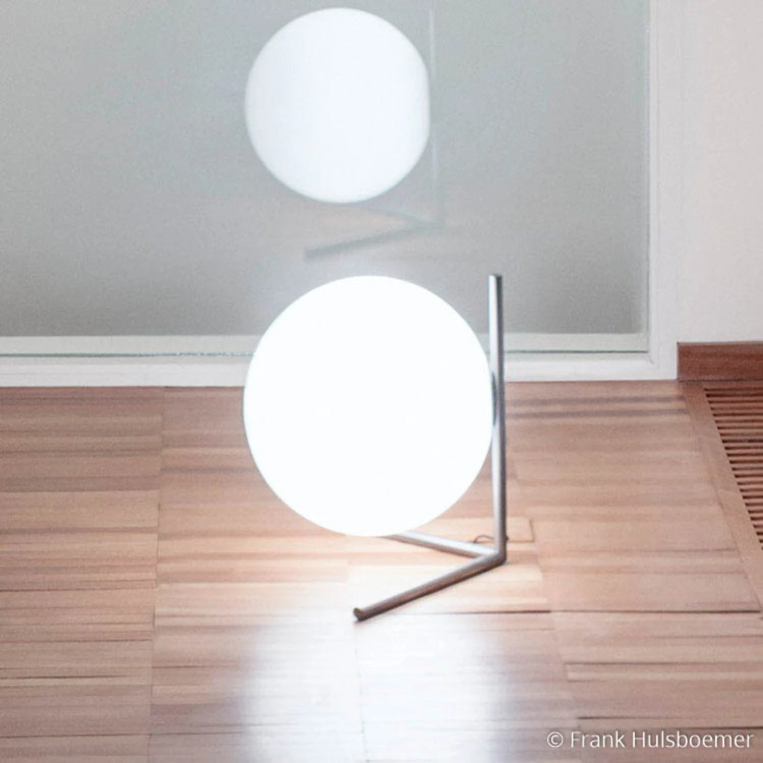 Whether on a windowsill, on a shelf or on a table, the table lamp IC Lights T2 is a decorative highlight in any place and in any room. The spherical shade is made of blown opal glass and almost seems to float between the three narrow metal struts of chromed steel that form the frame. The glass shade emits soft light into the surroundings all around, creating a cozy ambiance as well.