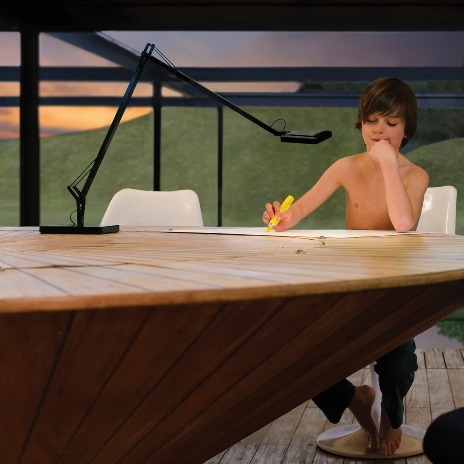 Energy efficiency and innovative operation meet a clearly reduced design: the LED table lamp Kelvin is not only a functional light source in the workplace, but also a fashionable alternative in the living area, for example as a reading light. The double pantograph arm and the adjustable head guarantee a high degree of flexibility. Particularly practical is the electronic on/off switch on the top of the reflector head – through this, the LED table lamp can be conveniently operated.