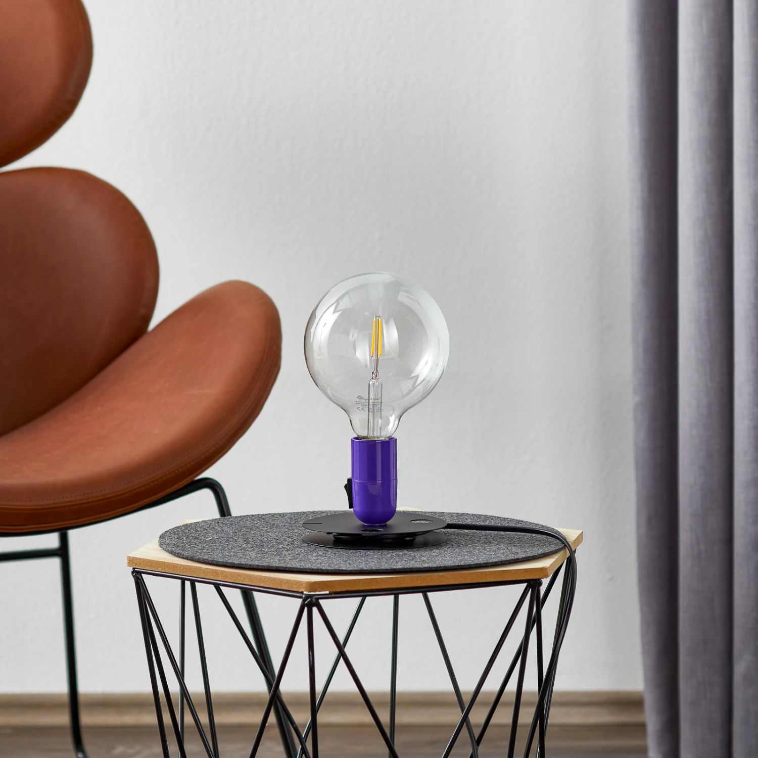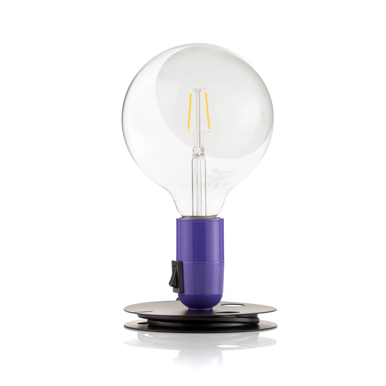 Designer Achille Castiglioni created Lampadina for the Flos showroom in Turin in 1972, and the design now goes again with trendy color. The table lamp consists of a clear LED bulb, which has a round satin circle that makes up about a third of the lamp. This part ensures that the reflection of light is limited in this area, making it possible to use it as a bedside lamp, for example. In addition, the filament look makes Lampadina look decorative. The base consists of a socket with a toggle switch and a film reel-like base that allows excess cable to be rolled up.