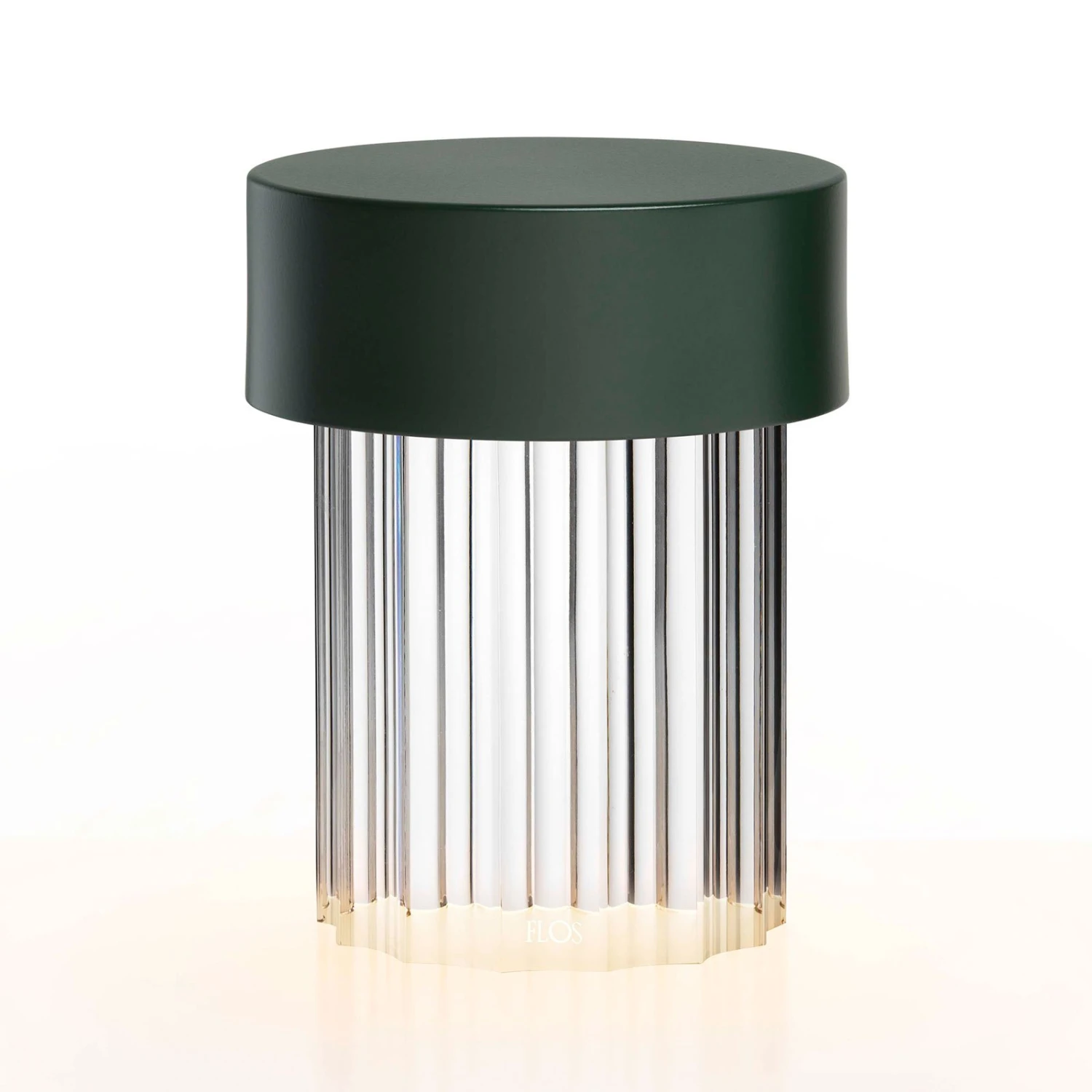 Battery-powered designer table lamp Last Order – plastic base fluted