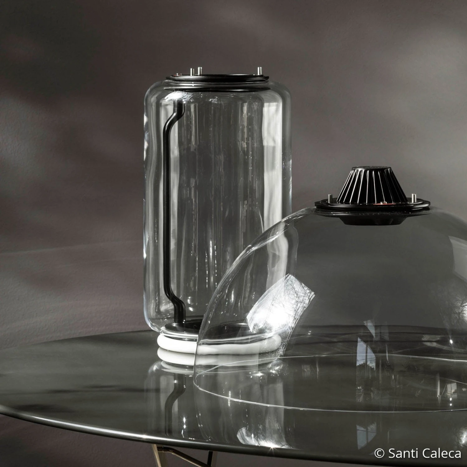 The designer Konstantin Grcic has succeeded in creating impressive lighting elements with the Noctambule series of lamps, which on the one hand can be excellently integrated into many interior styles without attracting attention, and on the other hand the lamps attract every eye as soon as the light source is activated. Noctambule translated means night owl or night owl and is perfectly embodied by the lights. During the day they are inconspicuous and in the dark they create a pleasant light atmosphere with their warm white LED light, which is almost invisibly installed between the individual glass elements.