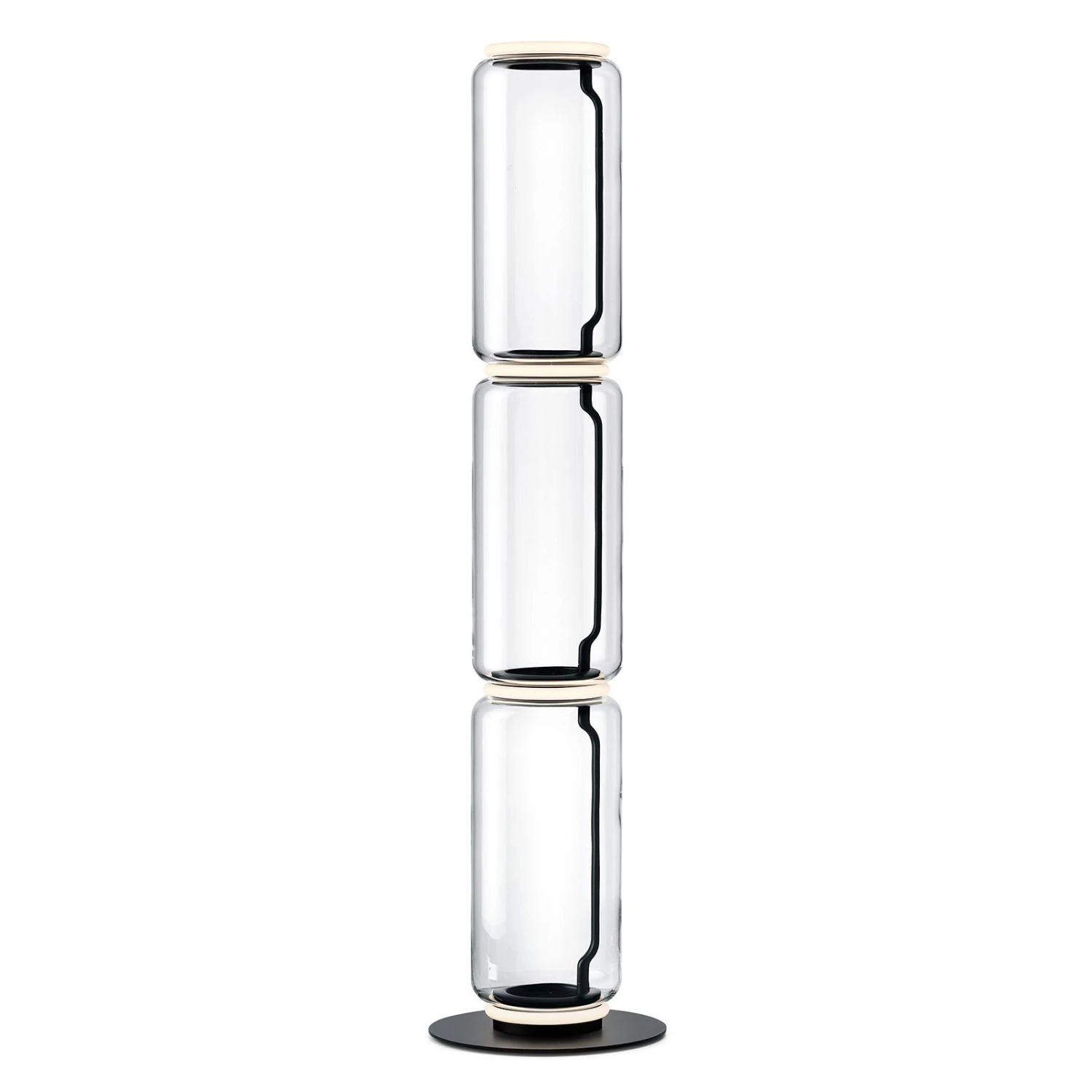 A single glass element is reminiscent of a lantern. It is the basic element of each Noctambule lamp, which consists of different number of elements and a base. The power cord and the pedal switch installed on it are used to switch on/off and dim the brightness from ten to 100 percent and vice versa.