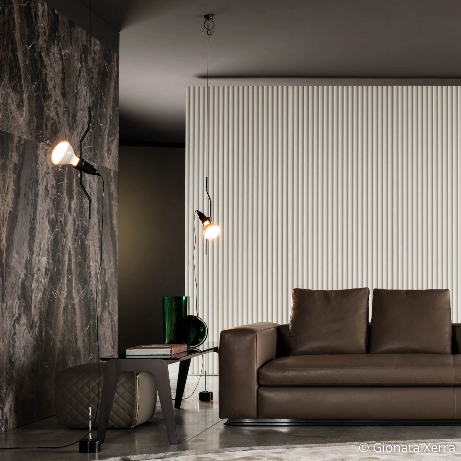 Neither floor lamp nor pendant lamp or both? It is certainly not always necessary to find a categorization for things, but if you try it with this lamp, you can also quickly come up against limits. If you identify this design object as a pendant lamp, you will quickly realize that almost everything about it is anything but classic and ordinary. This starts, first of all, with the fact that you can not hang it over something – a table, for example – because in addition to the ceiling suspension is always needed a place on the floor to bring Parentesi in the right position. Also, there is no classic shade, as known from a large part of the living room lamps – no, a mere spotlight provides direct light. This can be aligned as desired and is equipped with a switch. Parantesi may not be a typical light source, but it is an attractive design object and a useful lamp in any case!