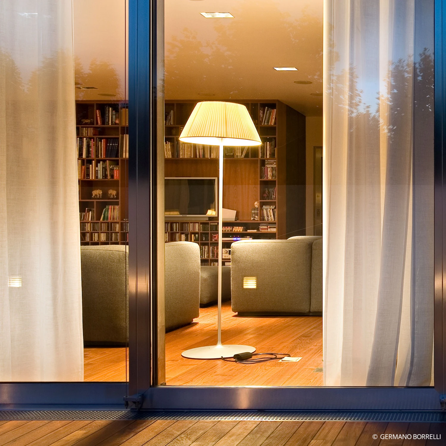 With the lamp series Romeo Soft F Philippe Starck has breathed new life into the pleated shade, which is associated by many with a long-gone trend. Created in 1998, this floor lamp can now also be counted among the modern classics that will probably never go out of fashion. The fabric shade not only looks classically good, but also brings out a pleasantly pleasant lighting atmosphere. Whether modern or traditionally furnished, the floor lamp Romeo Soft F fits both the design-oriented apartment and the traditionally furnished house.