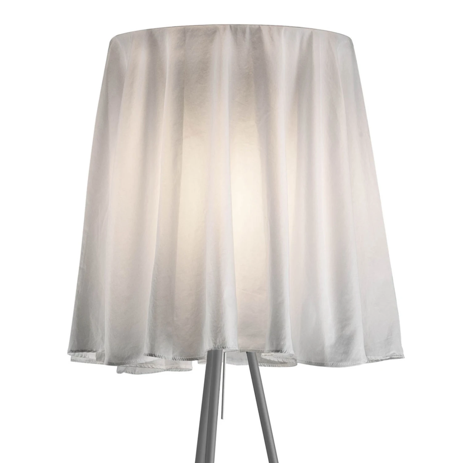 The floor lamp ROSY ANGELIS was designed by Philippe Starck and comes from the house FLOS. It clearly bears modern features, which can be seen, for example, in the puristic-looking, three-legged frame. The floor lamp is also somewhat reminiscent of a bistro table with a tablecloth, as known not least from festive receptions. And it is precisely this use of familiar shapes in a new context that can also be called a popular modern style feature. Be that as it may, the most important thing about a luminaire is that it fulfills its function as a light source, and who doesn’t want comfortable and inviting light for living spaces, which ROSY ANGELIS is perfectly capable of producing as a floor lamp?