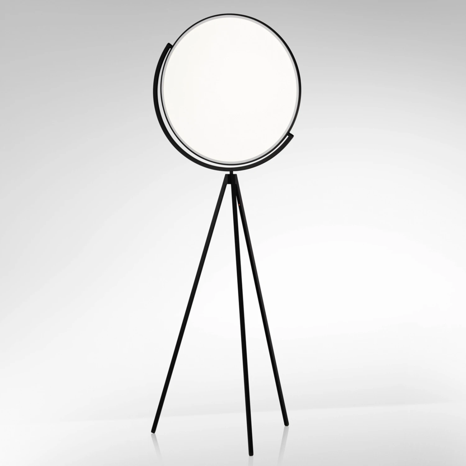 Superloon is one of the particularly extravagant light dispensers among the floor lamps, because it does not have much in common with the stereotype of a floor lamp. The black frame of the designer floor lamp from FLOS has a puristic tripod shape, and on top of it, in a fork-shaped holder, a round illuminated disc is embedded, which can produce extraordinarily bright light. In order to be able to better change the direction of the light, the illuminated disc has been designed to be movable, i.e. it can be rotated in the fork. This also makes it possible to create a more indirect light when the disc is rotated away from the viewer.