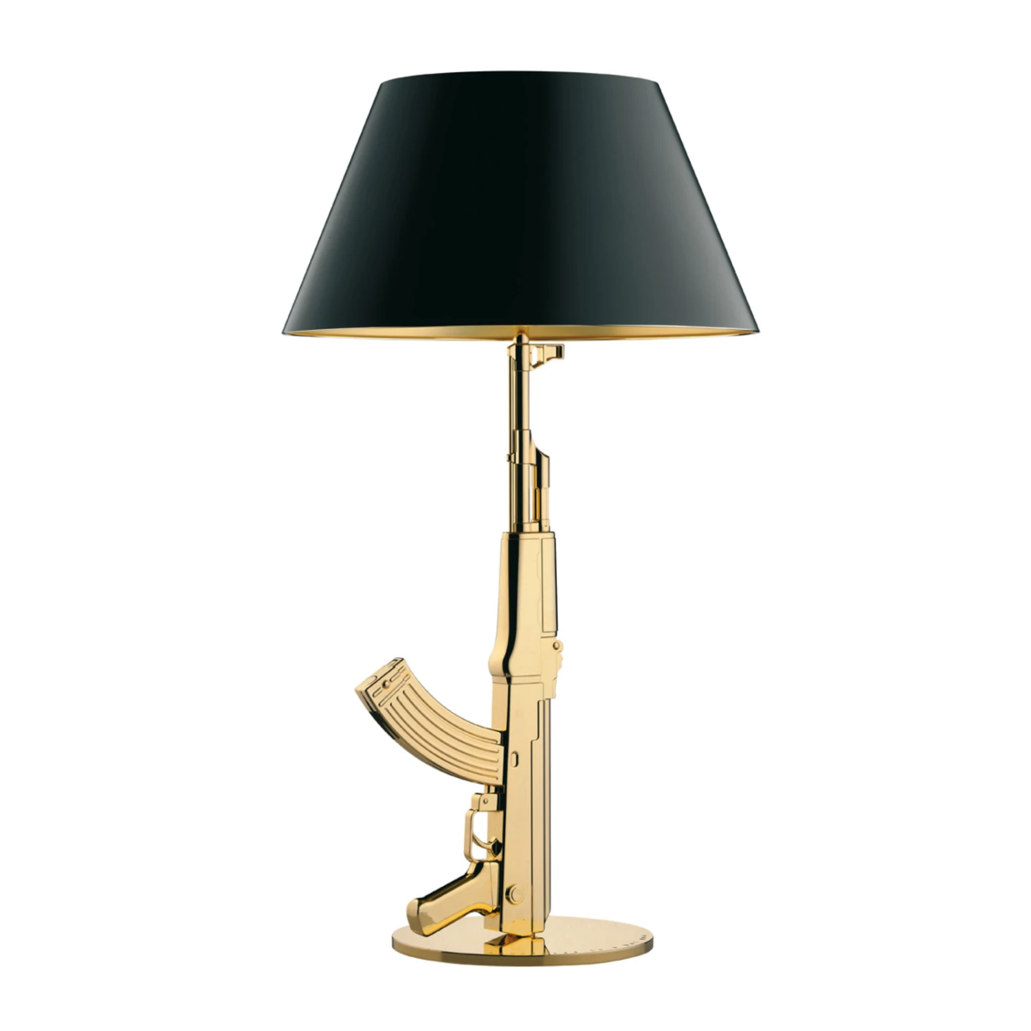 Prominent table lamp TABLE GUN with a socially critical message, designed by Philippe Starck
