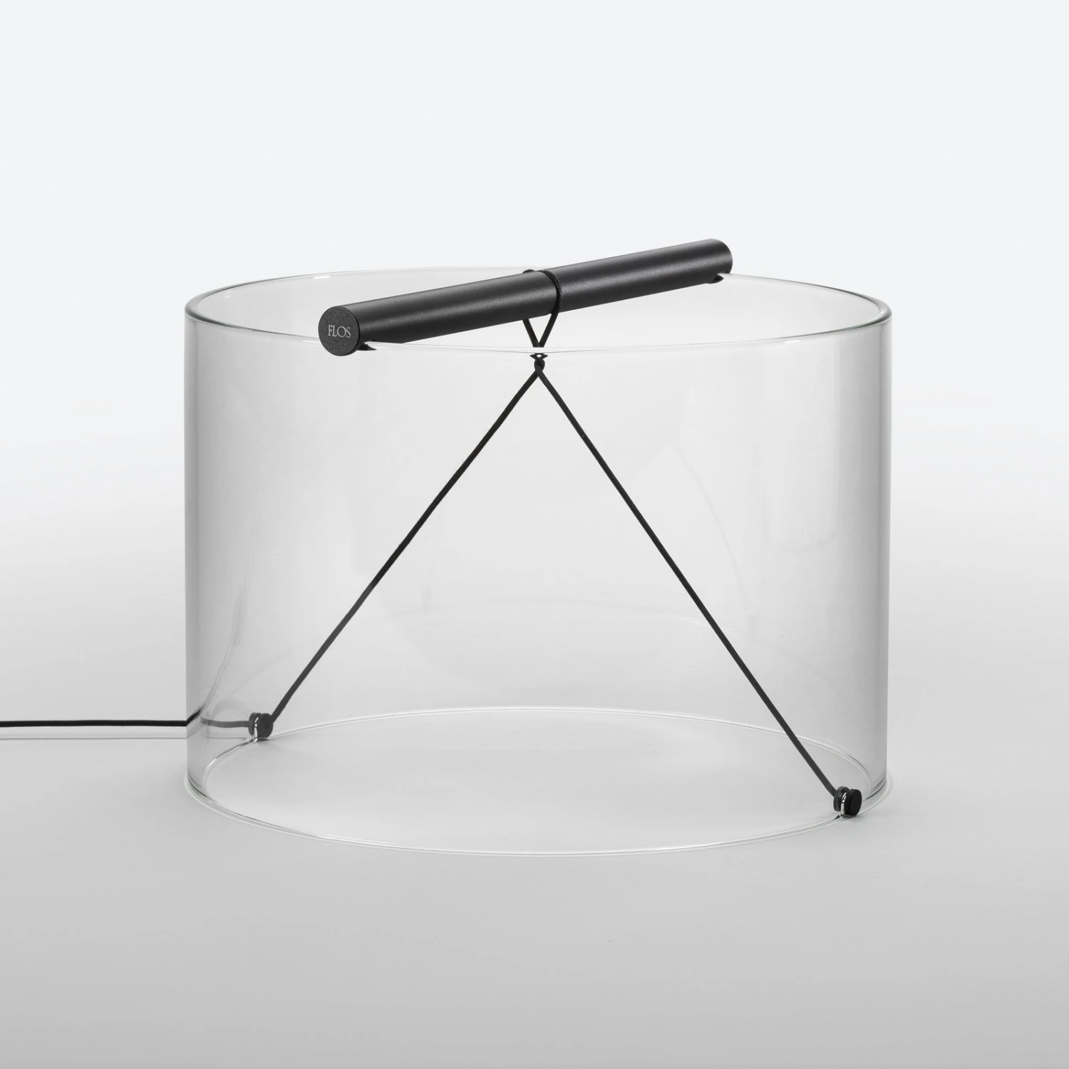 Stylish additional lighting throughout the interior: LED table lamp To-Tie T3, 2,700 K, Ra90, dimmer integratedWhether on the table, on the shelf or on the floor: The LED table lamp To-Tie T3 from FLOS convinces as a decorative lighting element on every level. The intensity of the warm white light generated by the integrated LEDs can be switched and dimmed with the control unit on the cable.At the same time, the individual components are held in position by the cable sheathed with textile. Thus, no glue is needed and all individual parts can be replaced at any time. This applies both to the openly designed cylinder made of glass and to the aluminum handle that houses the downward-facing light unit.A diffuser made of white polycarbonate is used to cover the LEDs. This allows diffuse light output without casting unwanted shadows. The To-Tie series was designed by Guglielmo Poletti. With it, the Italian designer celebrates his debut at FLOS.